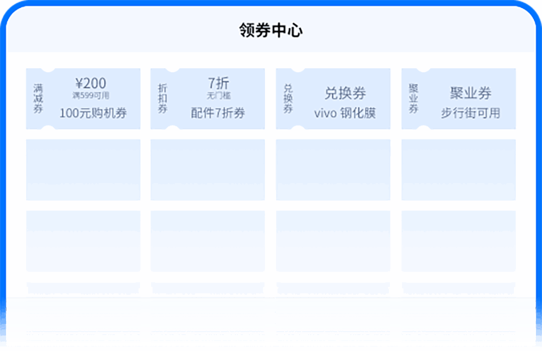 各种营销发券,满减券、折扣券、兑换券以及聚业劵可以根据不同定位活动的发放不同的券,消费者在线上商城也能看到自己所拥有的各种券,消费时候可以自动抵扣或兑换。