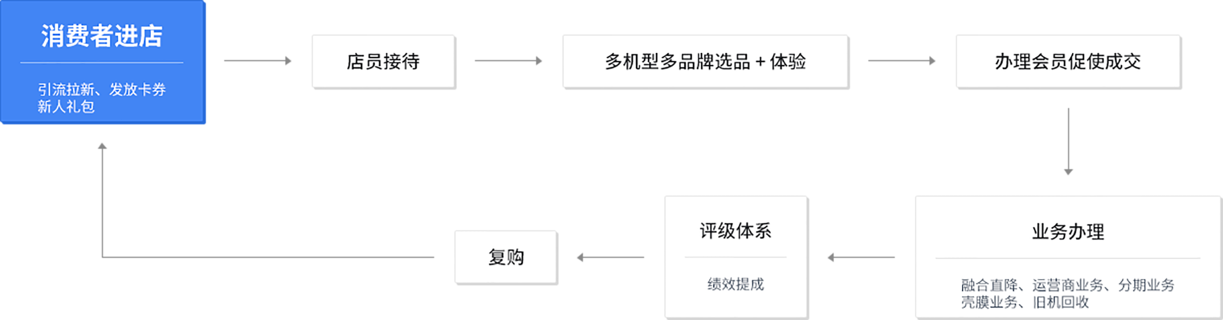 4.店员没有系统的支持全场景的业务工具。